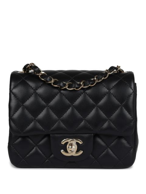 Mini Classic Square Flap Bag Black Lambskin Light Gold