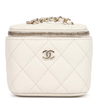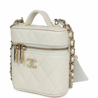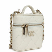 Mini Top Handle Crossbody Vanity Case White Caviar Gold Hardware