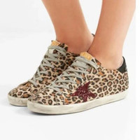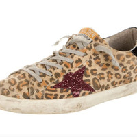 Golden Goose Super Star Glittered Leopard-print Leather Sneakers