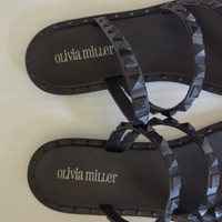 NWOT Olivia Miller Studded Strappy Summer Flat Sandals 9 Black