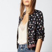 Zadig & Voltaire Vendrix Blazer Women's size 36 Like New Condition, only wore it twice. Short jacket Floral print Metallic bias trim Two clasps for closure 100% Viscose True to size