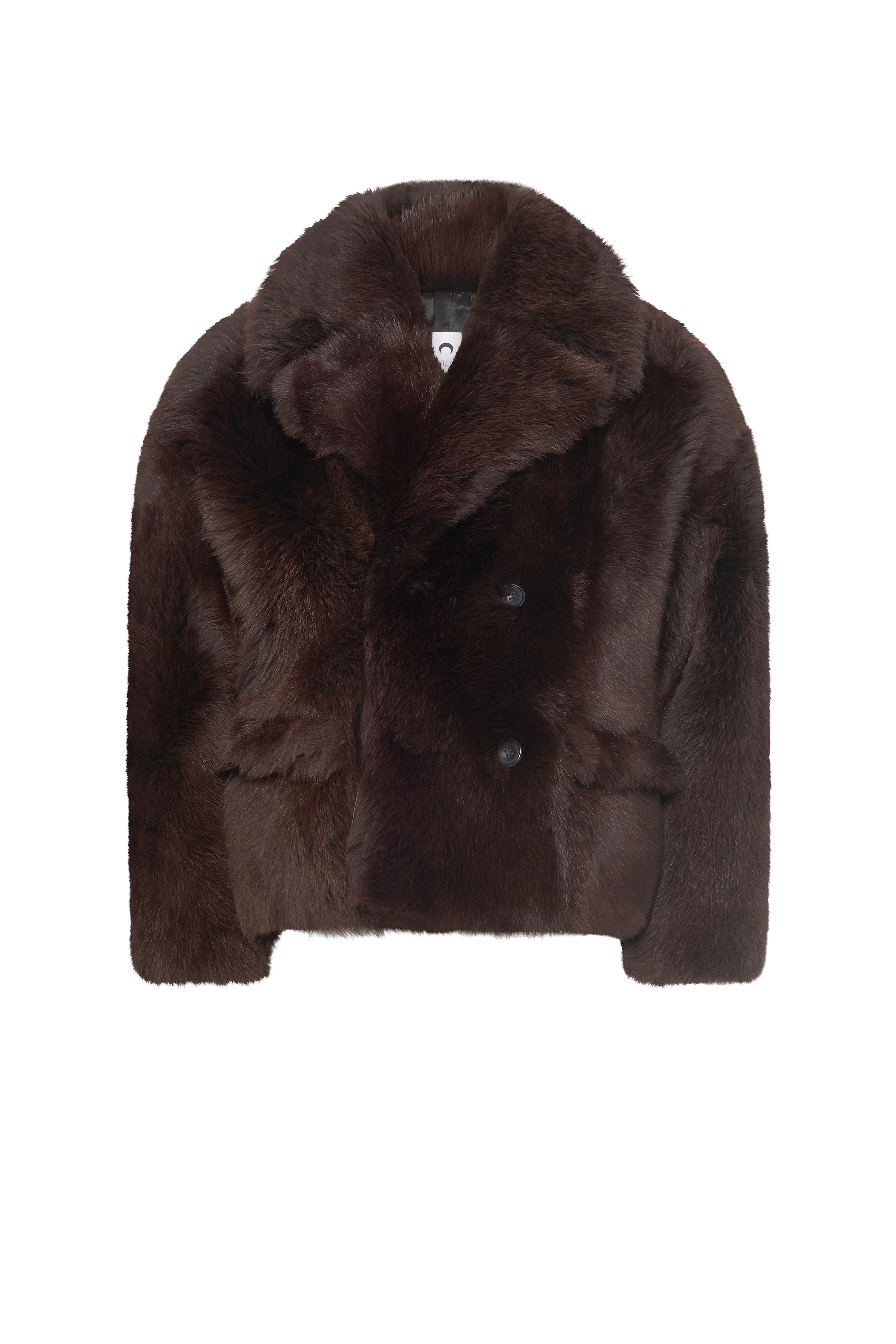 - Leather Buttons - Two Flap Pockets - Inside Pocket - Dropped Shoulders - Signature Moon Jacquard Lining - Marine Serre Leather Patch Materials Hairy Shearling Leather Brown Hairy shearling leather made from premium sheep and lamb hides, crafted in Italy. Naturally textured, fur-like surface offers visual richness and warmth. Contrasted with smooth lamb leather panels for a refined texture interplay. Fully lined in viscose for ease and a polished interior finish. Deep brown color enhances the texture and luxurious feel. Main Fabric: 100% Sheep Leather Second Fabric: 100% Lamb Leather Lining: 100% Viscose