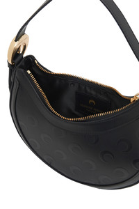 Small shoulder bag Product Detail - Zippered closure - Signature moon jacquard lining - Marine serre leather patch - 22 X 14 x 8 cm - Adjustable handle : 14 to 25 cm drop length Composition and Traceability Product details page relating to environmental qualities or characteristics WBA002A_RWOV0040_BK99_BLACK Composition: BASE MATERIAL: 63% POLYURETHANE, 23% POLYESTER, 14% COTTON - SECOND MATERIAL: 100% COW SKIN - LINING: 100% POLYESTER Traceability: Assembly, Finishing: Italy