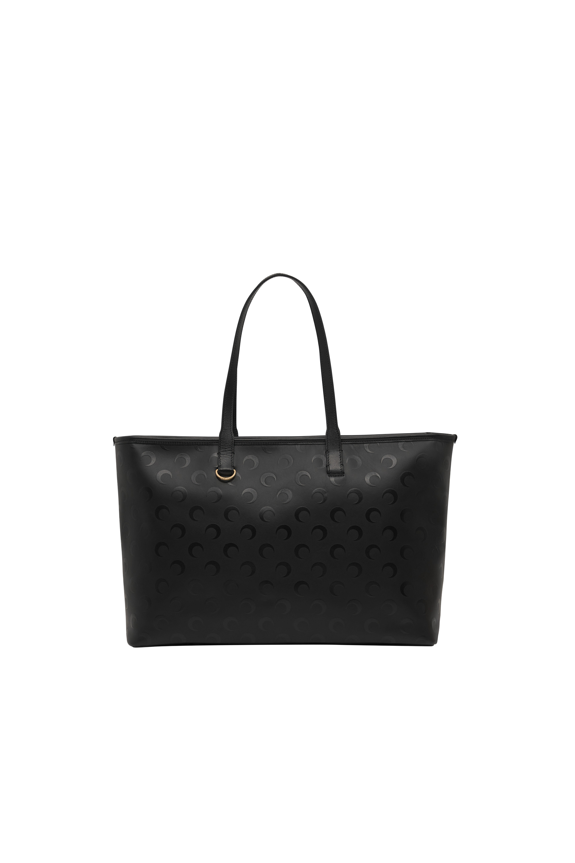 - Zippered closure - Inside zipped pocket - Signature moon jacquard lining - Marine Serre leather patch Materials Moon canvas black The moon canvas is a signature Marine Serre material featuring the iconic all-over moon print on durable canvas 63% PU, 23% PL, 14% CO - SECONDARY FABRIC: 100% COS - LINING 1: 100% PL