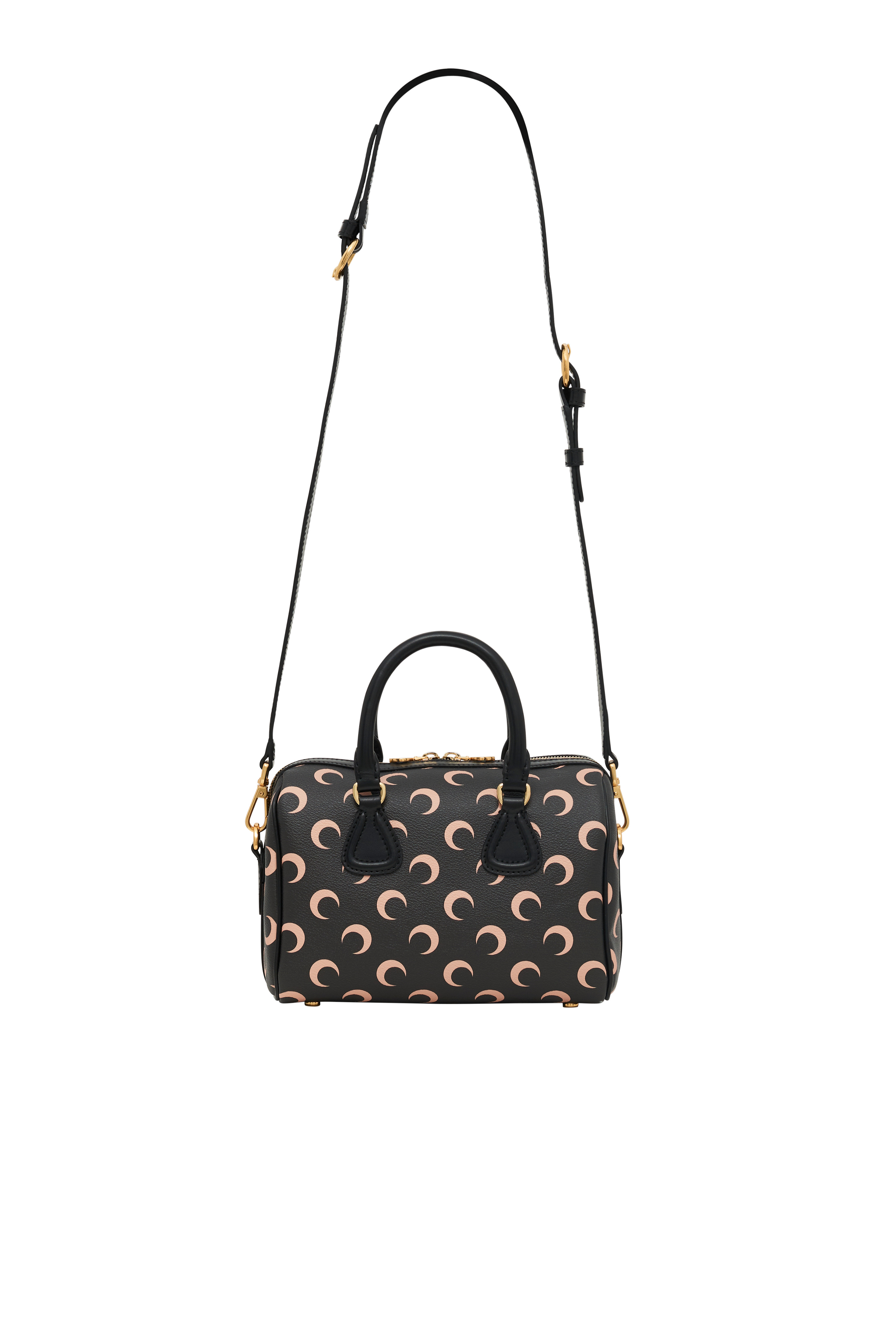 - Moon printed canvas exterior - Leather top handle attached with Moon and logo engraved hooks - Double zipper closure with Moon engraved puller - Interior in Moon jacquard lining, featuring an inside pocket, and a foiled logo patch - 24 x 17 x 15 cm - 7 cm handle drop length - Adjustable shoulder strap : 45 to 60 cm drop length Materials Moon Canvas LEATHER
