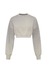 - FADED MOON artwork printed all over - Ribbed neckline, cuffs, and hem - Extra long sleeves with thumbhole - Branded label woven under neck in back Materials Moon Faded Fleece All the cotton Marine Serre sources for Borderline is GOTS-certified — this world-leading textile processing standard chiming with the house’s own well-known commitment to protecting the planet. In terms of the silhouettes across these ranges, we wanted to offer a wide range of everyday styles that are directly inspired by the world of sportswear. Our Moon Logo Jersey lines come in a range of traditional colours (white, black and grey, but in most cases lilac too) spun out across t-shirts, tanks and dresses, as well as underwear. These garments are finished in the classic way familiar from sportwear garments, with our Moon Logo in raised embroidery just below the neckline. Some of the Recycled Cotton Jerseys (lilac and grey) feature our MS Sport logo — a print moon with Marine Serre embroidered above, and we have also expanded our palette with seasonal colours such as red and blue, bearing a Gradient All Over Moon print. 100% COTTON