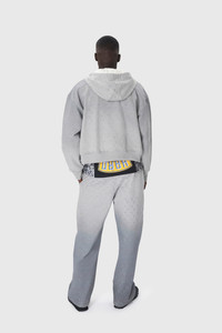 - FADED MOON artwork printed all over - Elastic waistband with drawstrings on interior side - Two pockets with bartacks - Elastic pant hem with stopper Materials Moon Faded Fleece All the cotton Marine Serre sources for Borderline is GOTS-certified — this world-leading textile processing standard chiming with the house’s own well-known commitment to protecting the planet. In terms of the silhouettes across these ranges, we wanted to offer a wide range of everyday styles that are directly inspired by the world of sportswear. Our Moon Logo Jersey lines come in a range of traditional colours (white, black and grey, but in most cases lilac too) spun out across t-shirts, tanks and dresses, as well as underwear. These garments are finished in the classic way familiar from sportwear garments, with our Moon Logo in raised embroidery just below the neckline. Some of the Recycled Cotton Jerseys (lilac and grey) feature our MS Sport logo — a print moon with Marine Serre embroidered above, and we have also expanded our palette with seasonal colours such as red and blue, bearing a Gradient All Over Moon print. 100% COTTON