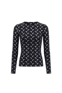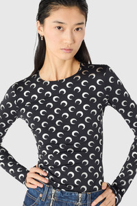 Second skin regular length top with crewneck and long sleeves Product Detail - Reinforced neckline - Cuffs and hem finished with raw edges - All over moon printed Composition and Traceability Product details page relating to environmental qualities or characteristics WTS006A_CJER0111_BK94_BLACK/SILVER Composition: 84% Polyamide, 16% Elastane Product Care: Machine wash 30°C Traceability: Weaving/Dyeing/Manufacturing: Portugal