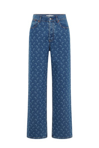 Low-waisted relaxed fit long denim pants Product Detail - Zipper and button - Five pockets - Belt loops - Signature moon laser printed all over - Cotton twill on front pockets - Marine serre leather patch Composition and Traceability Product details page relating to environmental qualities or characteristics MPA070B CDEN0002 BL05 LIGHT BLUE Composition: Base Material: 100% Cotton Traceability: Weaving/Dyeing/Manufacturing: Turkey