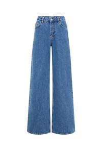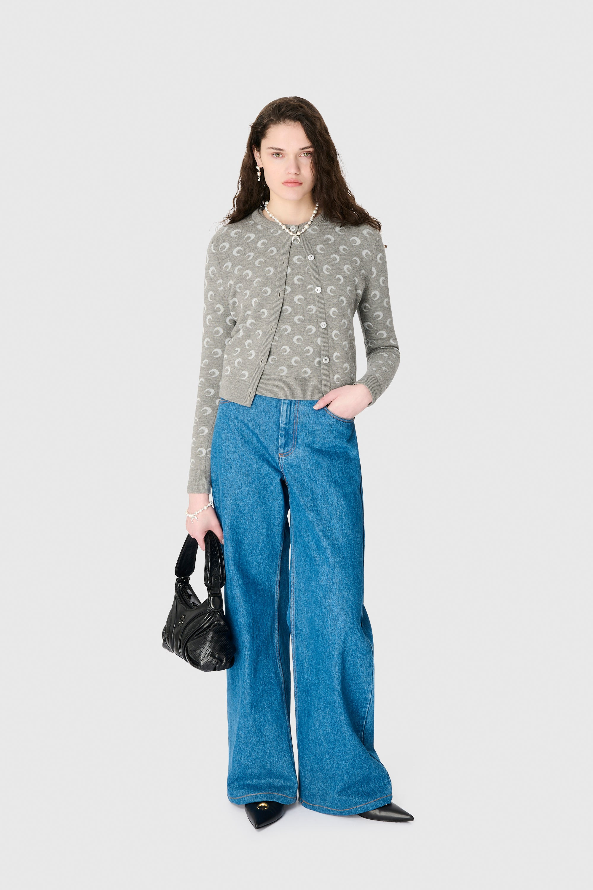 - Zipper and button - Five pockets - Belt loops - Cotton twill on front pockets - Marine Serre leather patch Materials Moon Laser Denim Blue Marine Serre offers a 100% GOTS Certified Organic denim twill family of garments, in addition to a Regenerated one. For this new family of denims, Marine Serre has opted for a light washed classic indigo as well as a striking black variant. 100% Cotton (GOTS Certified)