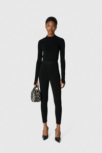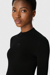 - Ribbed neckline - Ribbed sleeves and bottom finishings - Compact jersey stitch - Hotfix moon logo patch Materials Moon Logo Knit Black Slim-fit silhouettes designed for both women and men Essentials of the everyday wardrobe with a refined touch Tonal moon logo subtly integrated into each piece Combines comfort, minimalism, and brand identity effortlessly 88% VISCOSE 12% POLYESTER