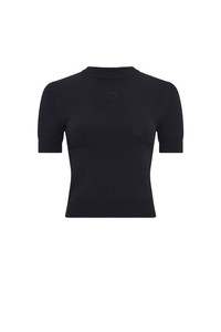 - Ribbed neckline - Ribbed sleeves and bottom finishings - Compact jersey stitch - Hotfix moon logo patch Materials Moon Logo Knit Black Slim-fit silhouettes designed for both women and men Essentials of the everyday wardrobe with a refined touch Tonal moon logo subtly integrated into each piece Combines comfort, minimalism, and brand identity effortlessly 88% VI, 12% PL
