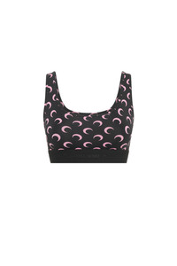 Second skin square neck bra with straps Product Detail - Reinforced neckline - Elasticated hem - All over moon printed Composition and Traceability Product details page relating to environmental qualities or characteristics WUW055B_CJER0001_BK90_BLACK/PINK Composition: 84% Polyamide, 16% Elastane Product Care: Machine wash 30°C Traceability: Weaving, Dyeing: Italy Manufacturing: Portugal