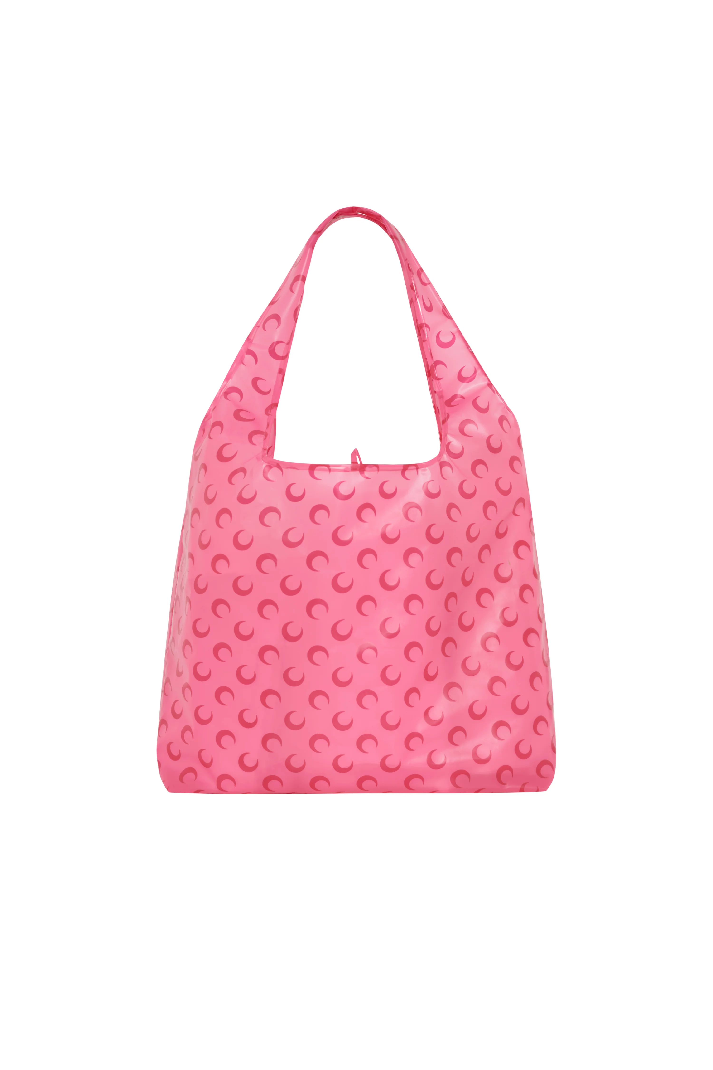 Shopping Bag Product Detail - Self-folding bag - Self-folding bag with integrated pouch - Printed moon logo Composition and Traceability Product details page relating to environmental qualities or characteristics WBA023A_RWOV0060_PK30_PINK Composition: Main Fabric 100% TPU Product Care: Gentle hand wash Do not bleach Do not iron Dry clean with precaution Do not tumble dry Traceability: Weaving, Dyeing, Manufacturing: China