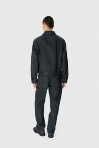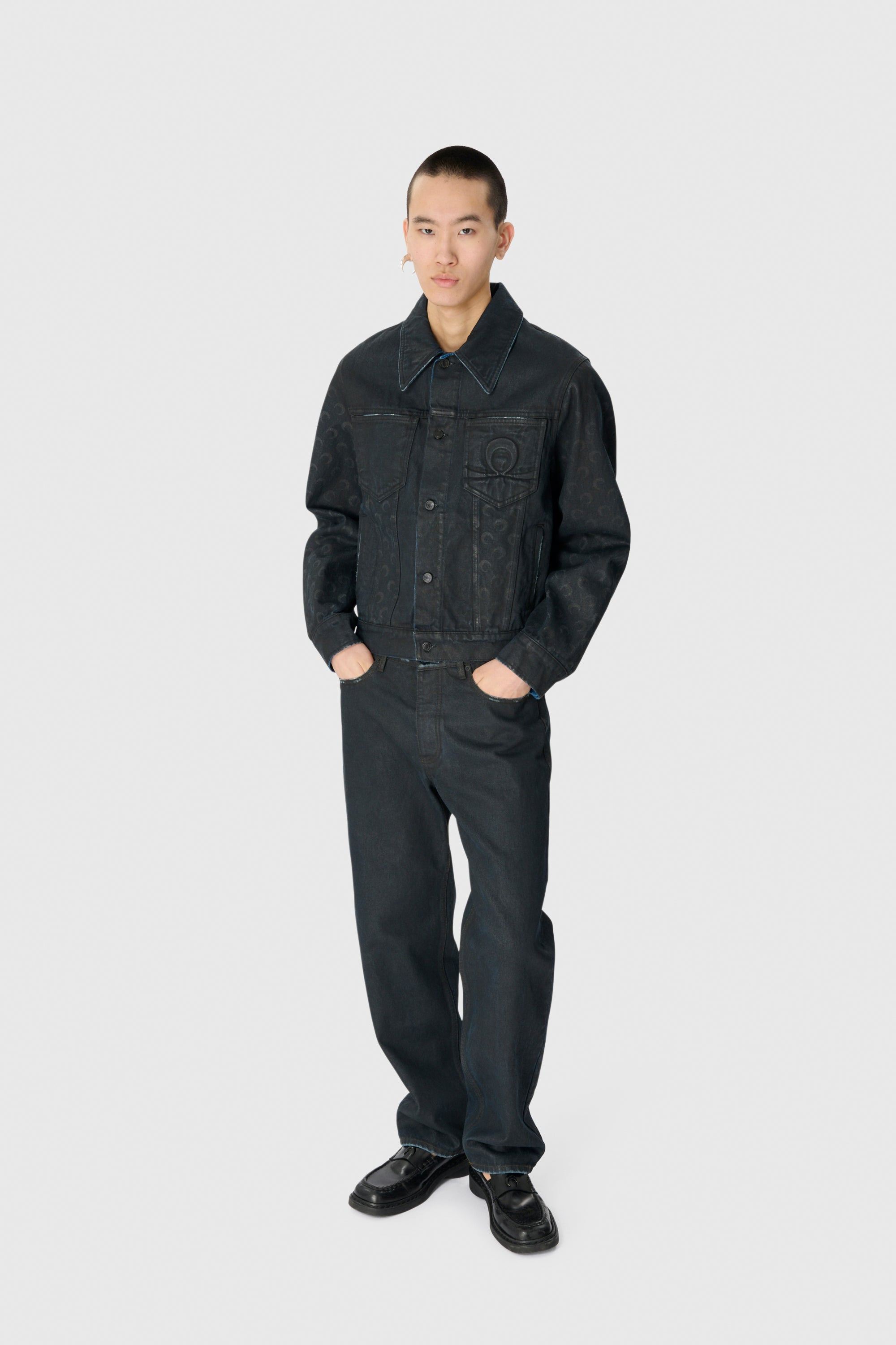 - Buttoned front - Two chest pockets - Welt side pockets - Buttoned sleeve cuffs - Adjustable waist - Signature moon laser printed all over on the sleeves - Marine Serre leather patch Materials Moon Waxed Denim Black Retains comfort and structure of traditional denim while enhancing color depth and wear resistance Offers strong visual impact with long-lasting durability Clean, minimal pieces with statement-making appeal and rich texture Slight gloss elevates silhouettes, perfect for day-to-night transitions Finished with signature Marine Serre details: tonal stitching, engraved metal buttons, and jacron back patch 100% COTTON