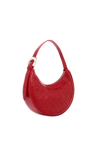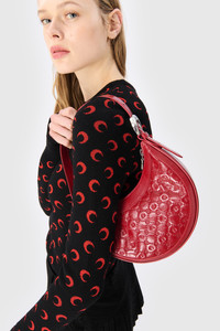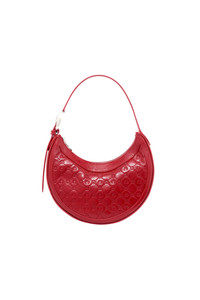 - Zipper closure with Moon engraved puller - Leather handle with Signature Moon buckle - Interior in Moon jacquard lining, featuring an inside pocket, and a foiled logo patch. - 23 x 18 x 7 cm - Adjustable handle : 14 to 25 cm drop length Materials Moonogram Embossed Leather Red 100% Calf Skin (LWG GOLD)