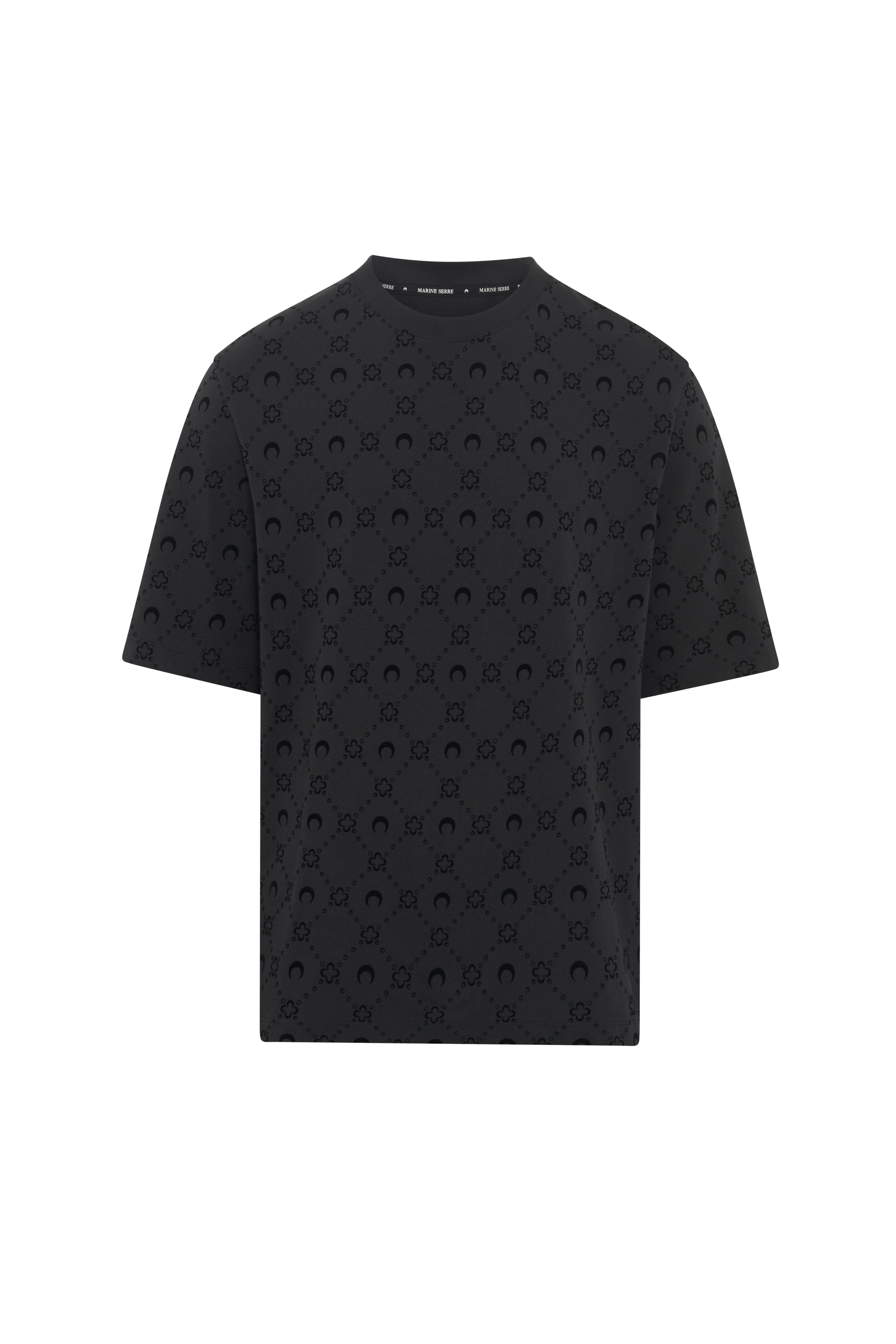 - Ribbed neckline - Roonogram flocked - Branded label woven under neck in back Materials Moonogram jersey black