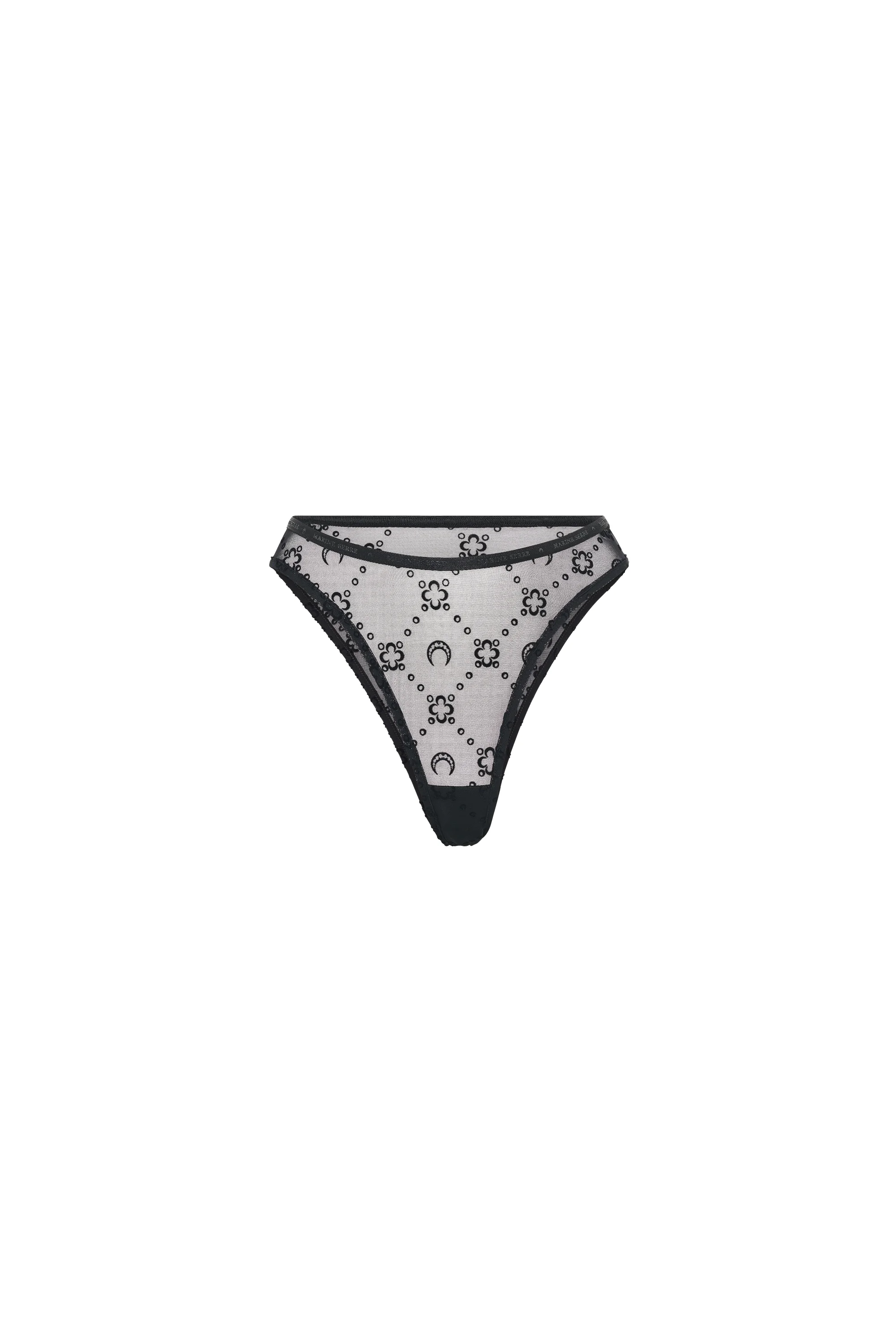 - Elastic waistband - Moonogram flock allover - Logo stamped on elastic hem Materials Moonogram Mesh Flock Black The Moonogram motif is flocked with soft velvet on our recycled mesh jersey, creating an incredibly comfortable fabric. The mesh’s transparency calls back to Marine Serre’s transgressive vision by having a material traditionally used solely for lingerie reimagined as day-to-day wear 86% Polyamide - Recycled (GRS Certified), 14% Elastane