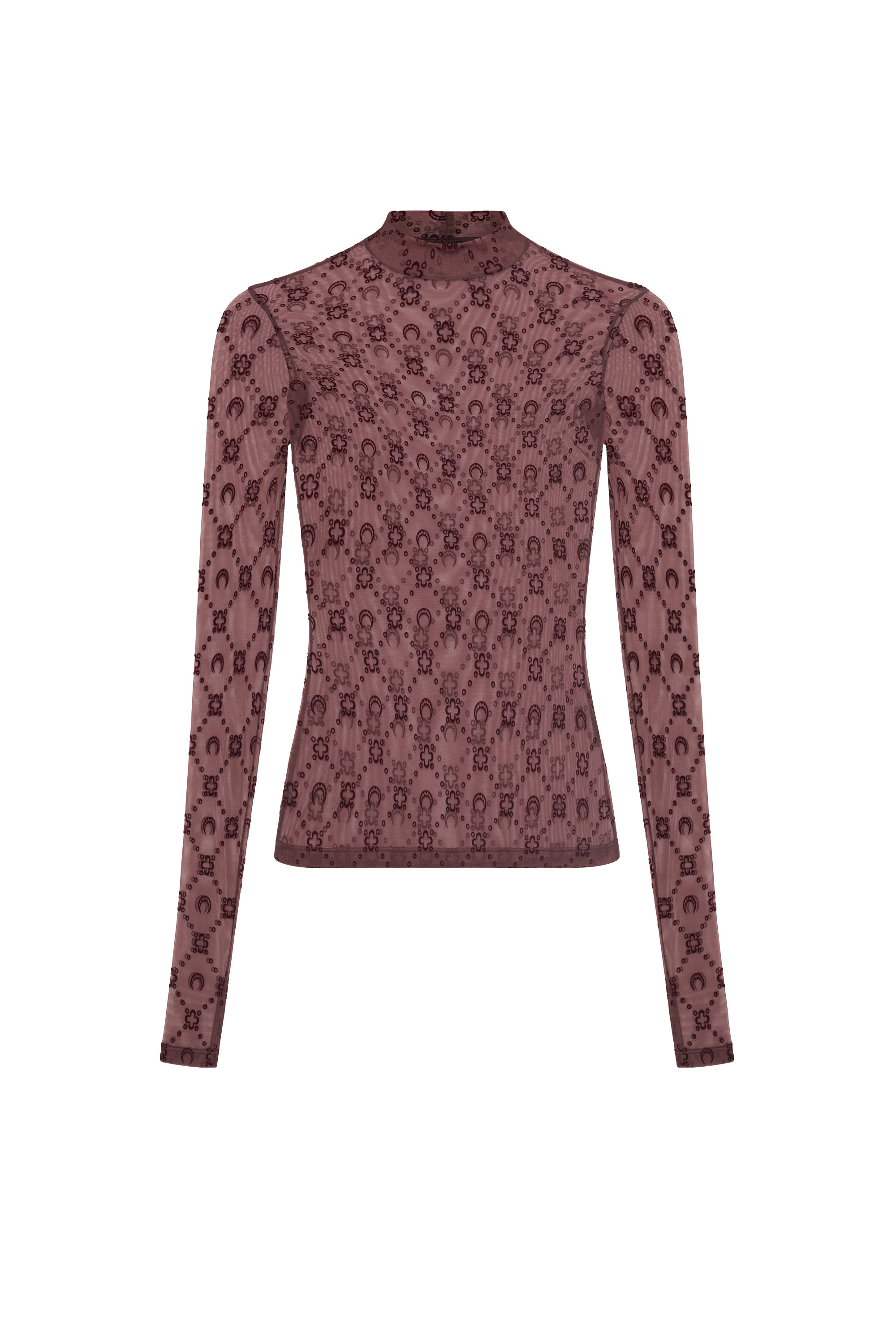 Moonogram Mesh Flock Ls Highneck Top