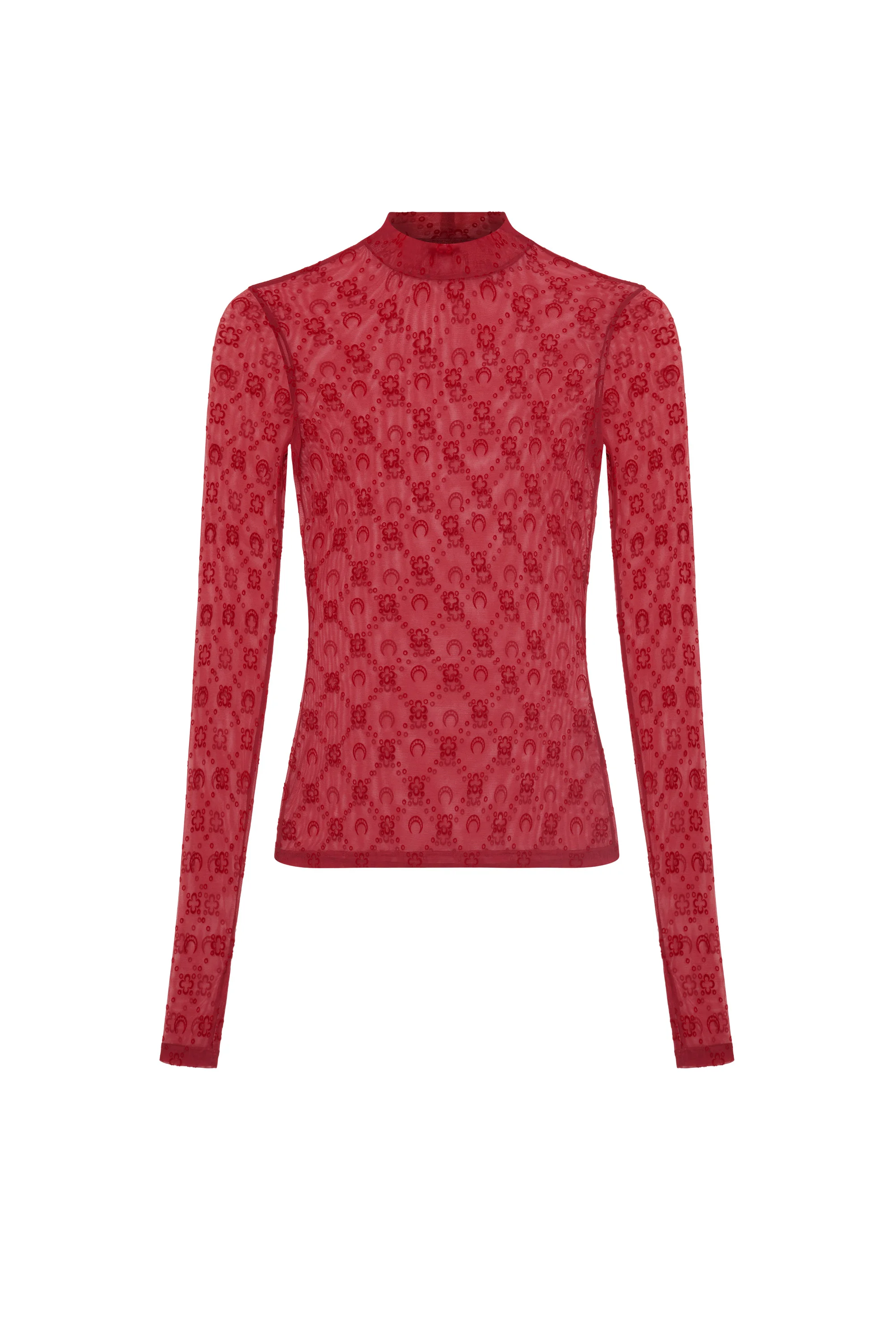 MOONOGRAM MESH FLOCK LS HIGHNECK TOP