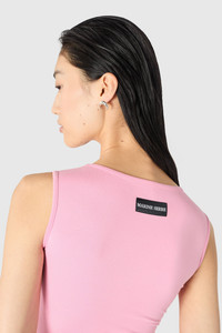 Sleeveless Asymetrical long dress Product Detail - Marine Serre pearl logo on the chest - Soft stretch jersey fabric - Asymmetrical hemline - Long length Composition and Traceability Product details page relating to environmental qualities or characteristics WDR481A_CJER0115_PK30_PINK Composition : 86% Polyamide, 14% Elastane Traceability: Weaving/Dyeing/Manufacturing: Portugal