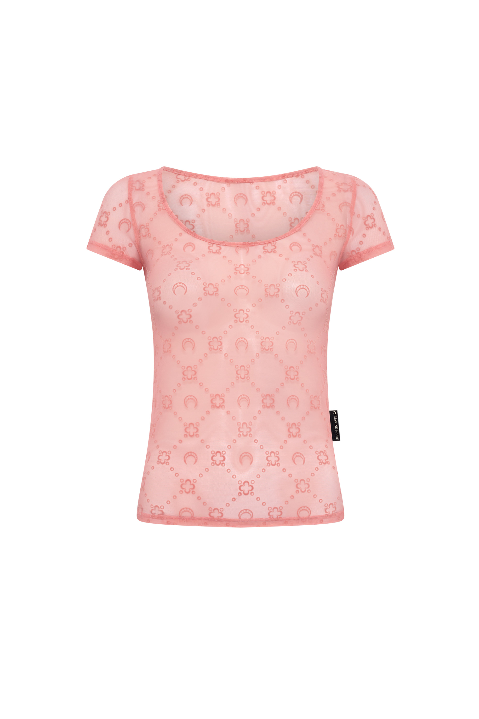 - Elastic waistband - Moonogram flock allover - Logo stamped on waistband - Label with logo on front left below elasticated waistband Materials Moonogram Mesh Flock Pink The Moonogram motif is flocked with soft velvet on our recycled mesh jersey, creating an incredibly comfortable fabric. The mesh’s transparency calls back to Marine Serre’s transgressive vision by having a material traditionally used solely for lingerie reimagined as day-to-day wear. 86% Polyamide - Recycled (GRS Certified), 14% Elastane