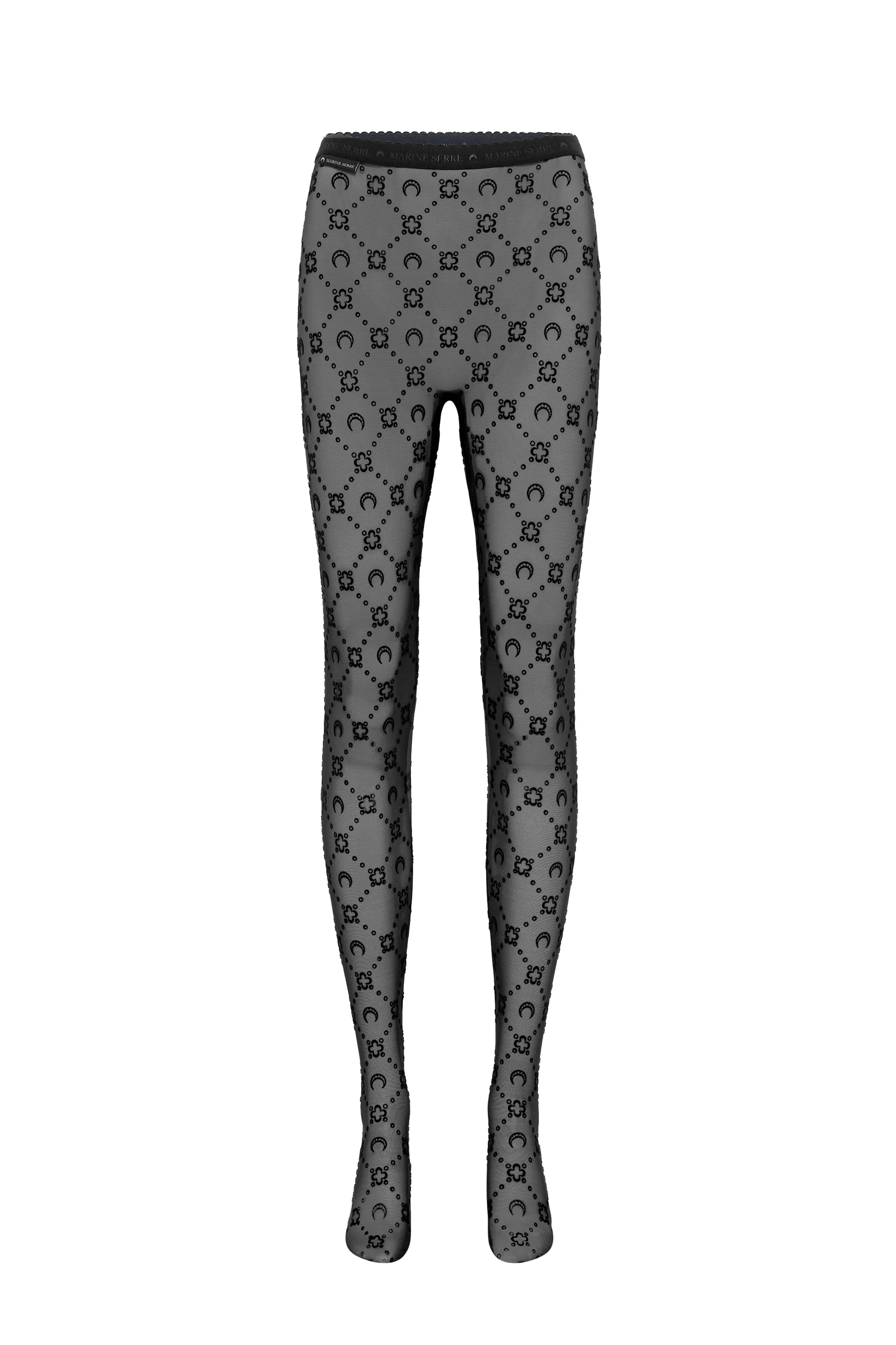 Second skin high-waisted tights Product Detail - Signature Moonogram flocked all over - Branded elastic waistband - Branded label woven on waistband seam Composition and Traceability Product details page relating to environmental qualities or characteristics WUW034A CJER0005 BK99 BLACK Composition: 86% Polyamide, 14% Elastane Recycled material: 86% (Polyamide) Releases plastic microfibers into the environment when washing Traceability: Weaving, Dyeing, Manufacturing: Italy