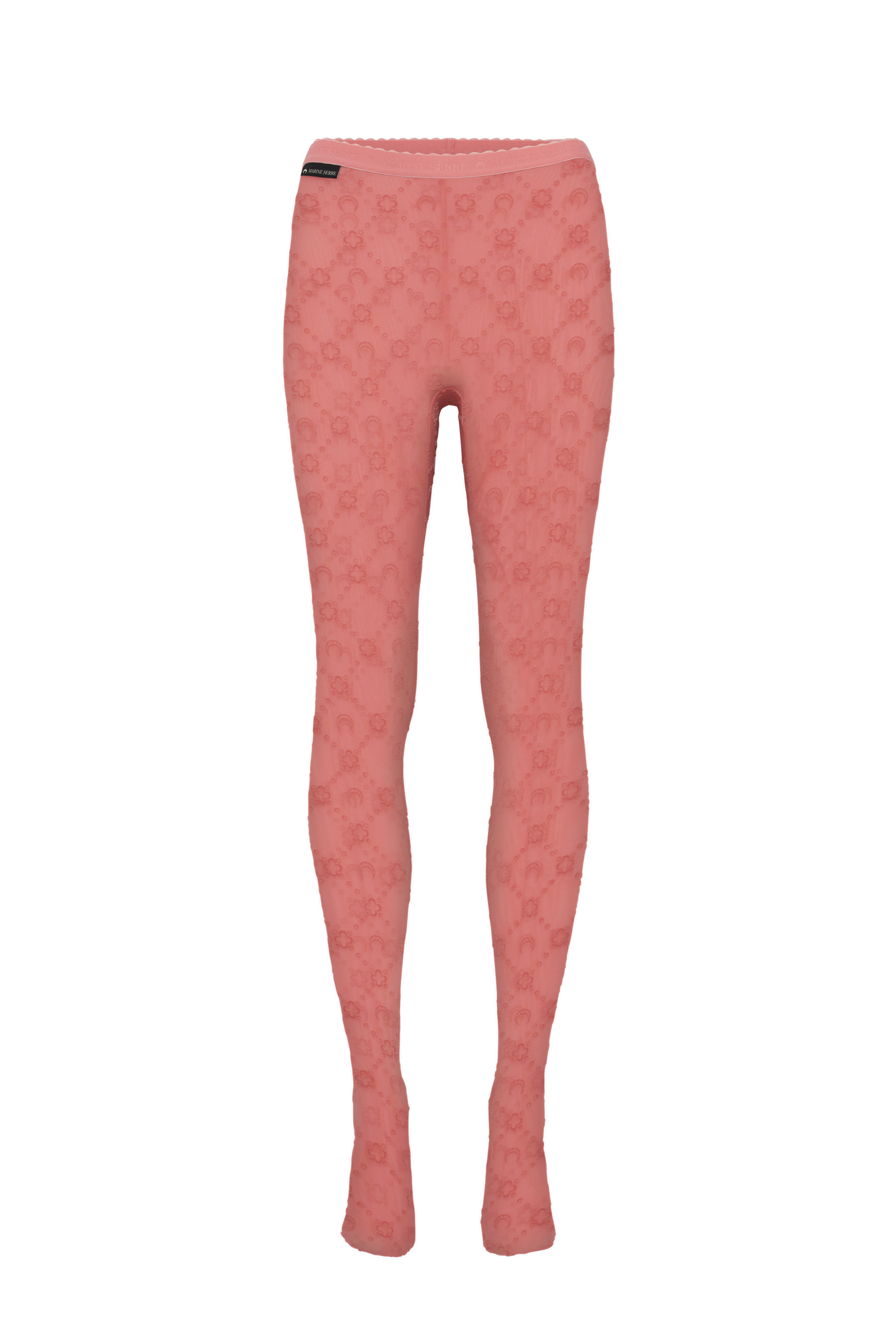 Second skin high-waisted tights The discount percentage displayed on Last Chance products is calculated based on the product's original selling price before markdowns. Product Detail - Signature Moonogram flocked all over - Branded elastic waistband - Branded label woven on waistband seam Composition and Traceability Product details page relating to environmental qualities or characteristics WUW034A CJER0005 PK20 FLAMINGO PINK Composition: 88% Polyamide, 12% Elastane Recycled material: 86% (Polyamide) Releases plastic microfibers into the environment when washing Traceability: Weaving: Italy Dyeing, Manufacturing: France