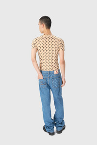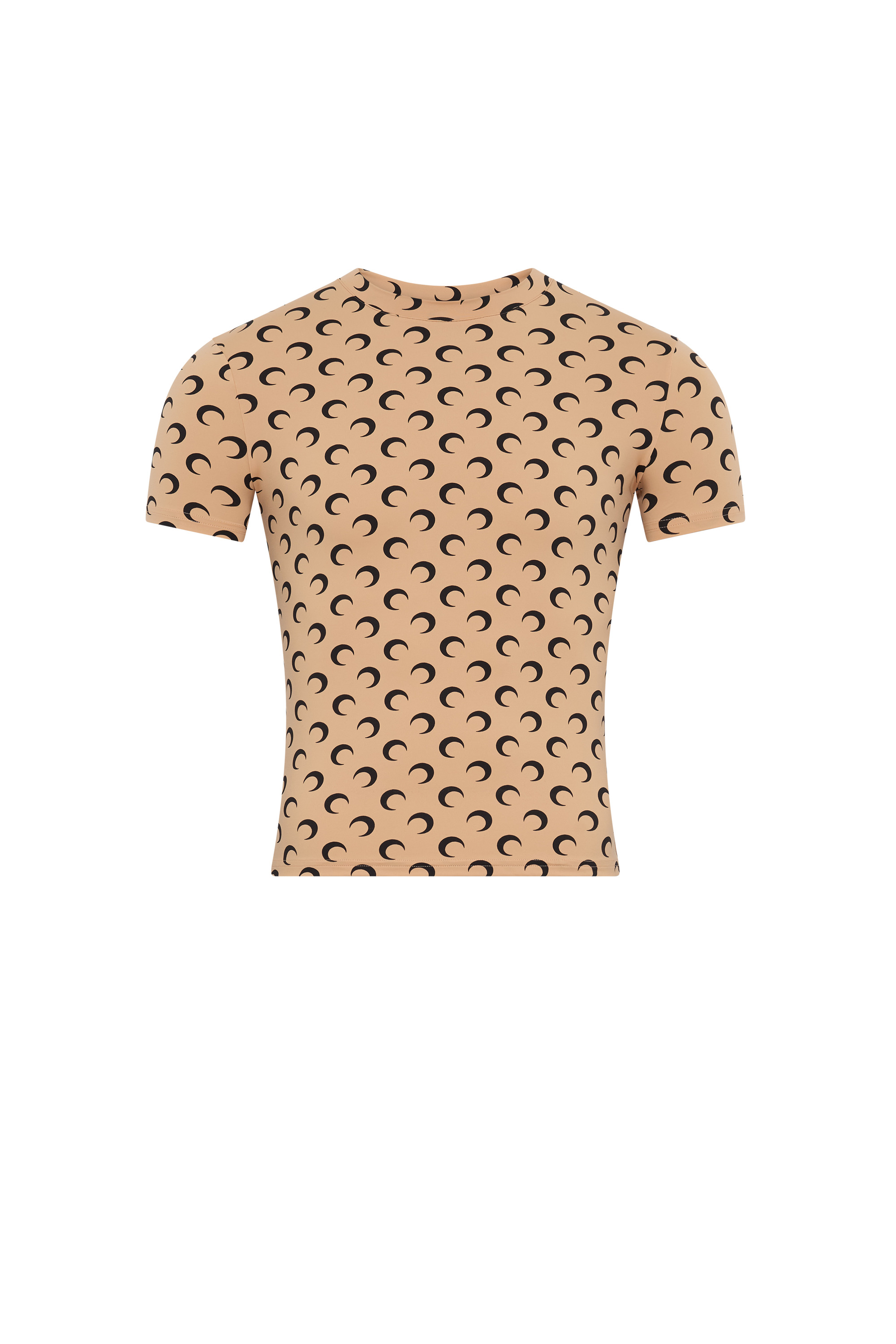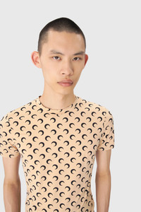 - Signature Moon printed all over - Reinforced neckline - Raw edge cuffs and hem Materials All Over Moon Jersey Tan The All Over Moon print is the banner of the House, it represents the house’s virtues and vision of Futurewear, ever present since the very beginning of the House for RADICAL CALL FOR LOVE. Indeed, what is perhaps the House’s most popular line holds its values at heart with a jersey composed entirely of recycled material. 88% Polyamide (GRS Certified) - Recycled, 12% Elastane
