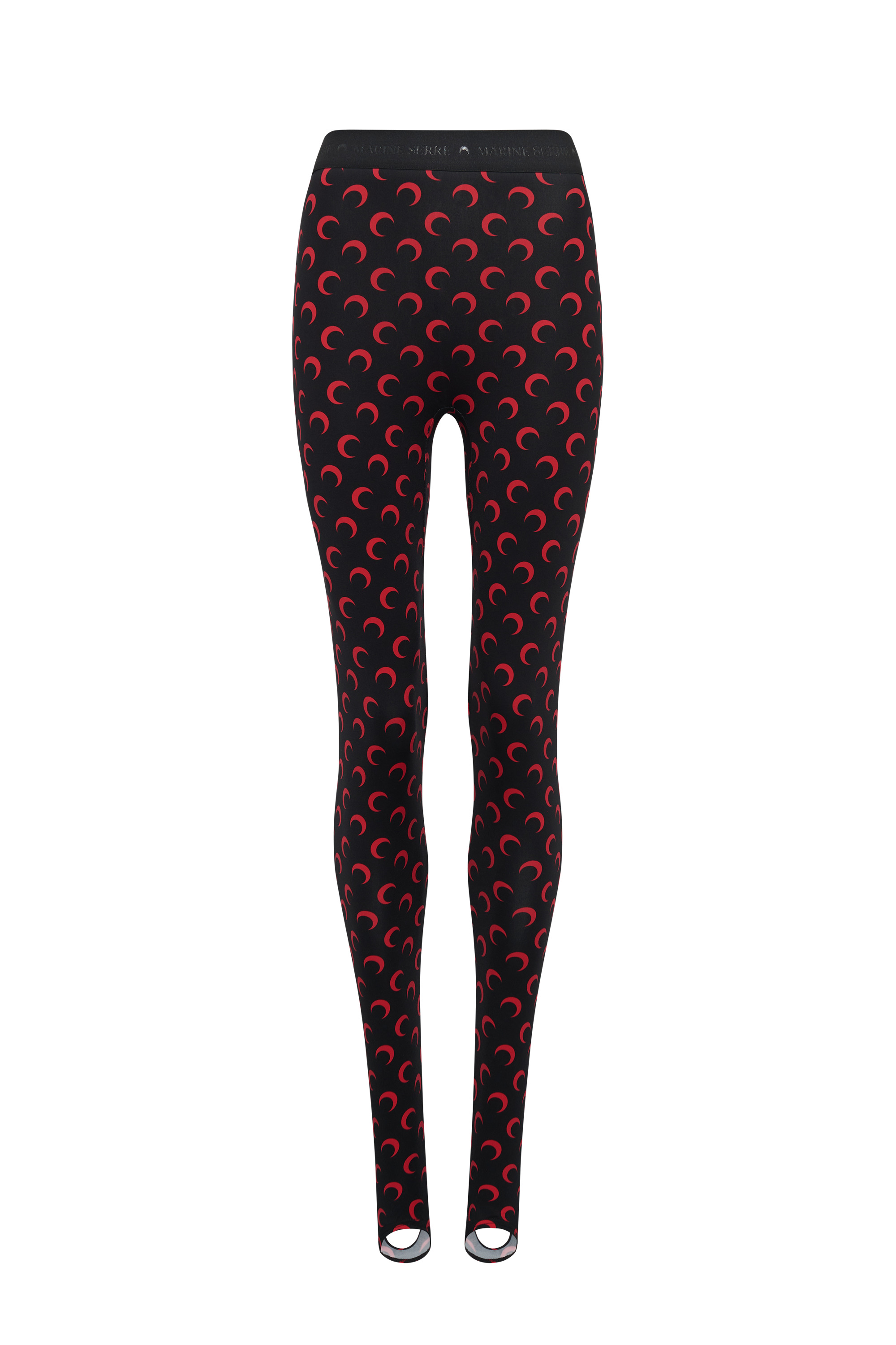- Elastic waistband - Stirrups - Moon print allover - Logo stamped on waistband Materials All Over Moon Jersey Red The All Over Moon print is the banner of the House, it represents the house’s virtues and vision of Futurewear, ever present since the very beginning of the House for RADICAL CALL FOR LOVE. Indeed, what is perhaps the House’s most popular line holds its values at heart with a jersey composed entirely of recycled material. 88% Recycled Polyamide (GRS Certified), 12% Recycled Elastane