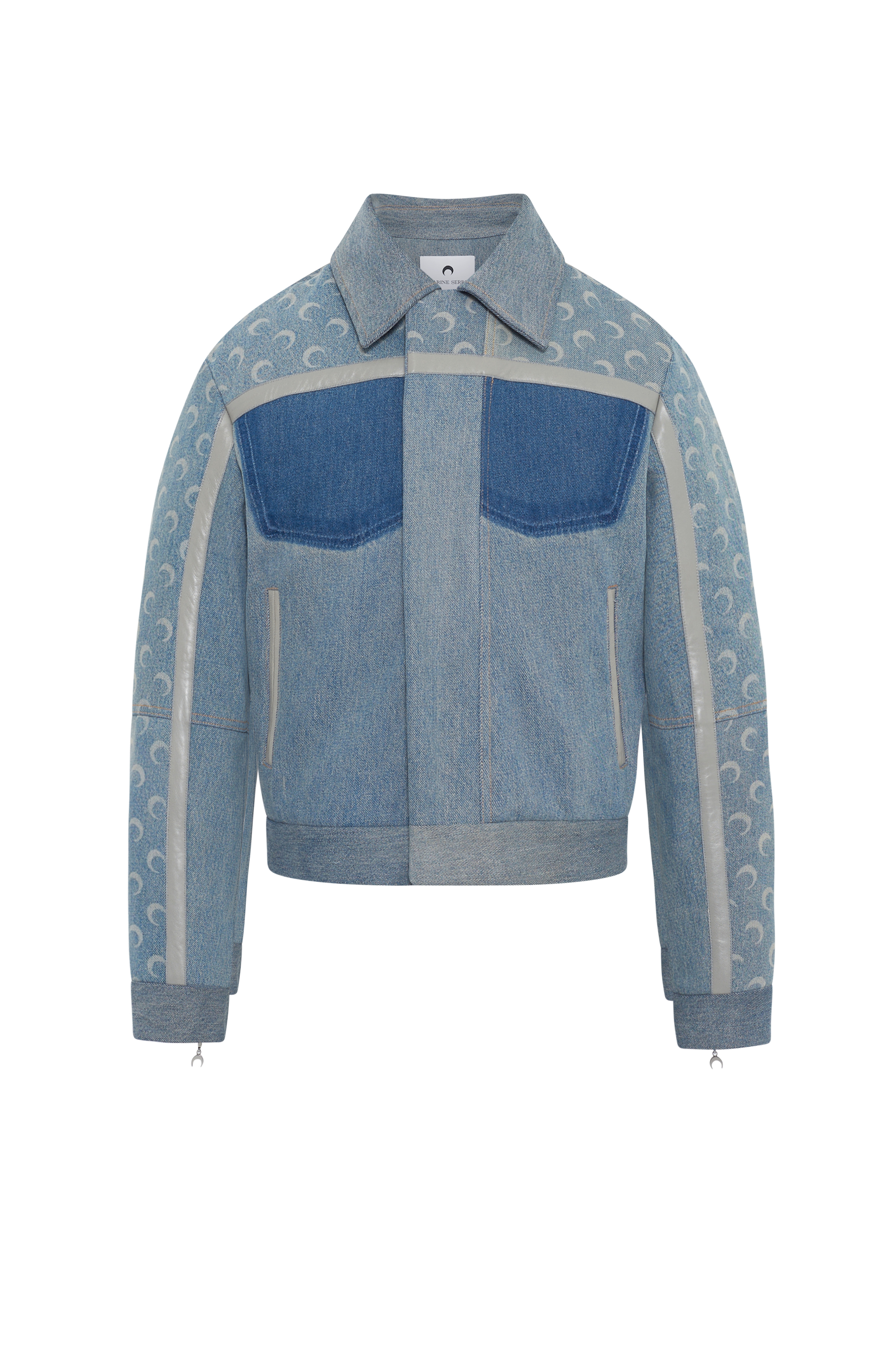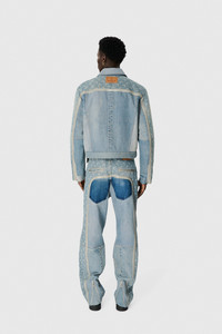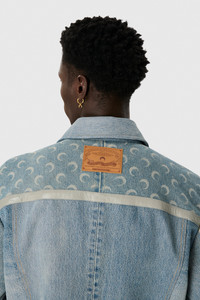 - Hidden zipper and snaps - Two welt pockets - Adjusted buttons on waistband and cuff - Fully lined with nside pockets - Marine serre leather patch Materials Regenerated Denim Light Sand Crafted from upcycled denim, using existing jeans and garments as raw material. Reflecting marine serre’s circular design ethos and commitment to sustainability. 100% COTTON