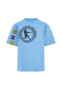 Regular-fit crewneck t-shirt with short sleeves Crafted through an upcycling process, each piece is unique, with possible variations in prints The discount percentage displayed on Last Chance products is calculated based on the product's original selling price before markdowns. Product Detail - Ribbed neckline - Signature Moon printed jersey cutouts on sides - Upcycled t-shirts patchwork construction - MS REGENERATED logo printed on left chest Composition and Traceability Product details page relating to environmental qualities or characteristics MTT093A UJER0003 BL05 LIGHT BLUE Composition: Base Material: 100% Cotton - Secondary Fabric: 100% Cotton Traceability: Material sourcing and upcycling country: France Manufacturing: Portugal