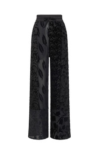Low-waisted straight long-length casual pants Product Detail - Tied with a drawstring - Two italian pockets - Elasticated waistband - Woven logo label Composition and Traceability Product details page relating to environmental qualities or characteristics UPA054A UWOV0056 BK99 BLACK Composition: Main Fabric: 70% Silk , 30% Viscose - Lining: 100% Polyester Traceability: Weaving, Dyeing, Manufacturing: France