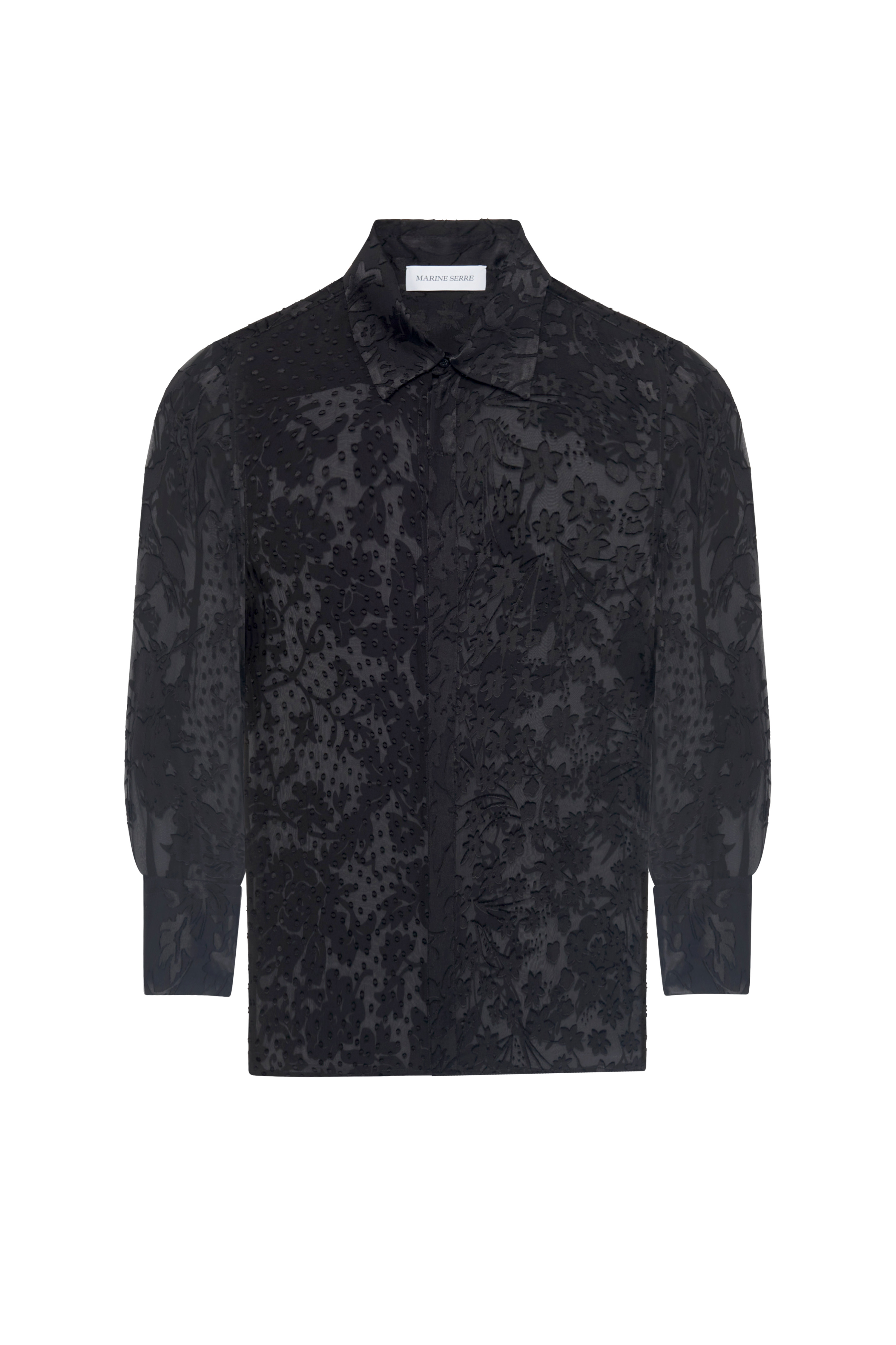 Classic regular length shirt with shirt collar and long sleeves Product Detail - Buttoned front - Set-in sleeve - Cuffs with one button - Woven logo label Composition and Traceability Product details page relating to environmental qualities or characteristics USI036A UWOV0056 BK99 BLACK Composition: Main Fabric: 70% Silk , 30% Viscose - Second Fabric: 70% Silk , 30% Viscose - Lining: 100% Polyester Traceability: Weaving, Dyeing, Manufacturing: France