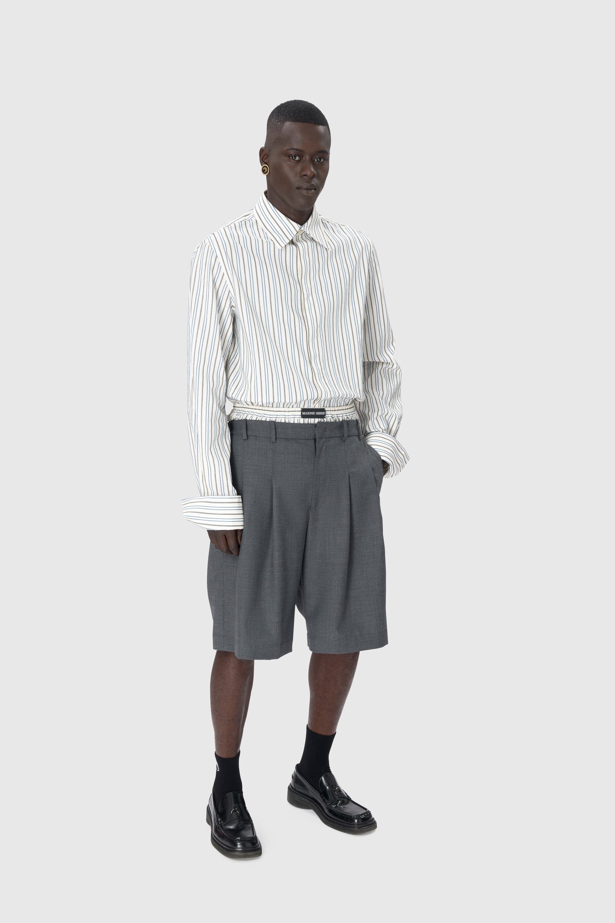 - Buttoned front with hidden button placket - Large four button folding cuffs with pleated gathers - Branded label woven on back yoke Materials Regenerated Striped Poplin The well-established Regenerated Household Linen line takes everyday staples like sheets, tablecloths, place mats and pillowcases and offers them an extraordinary new life. White embroidered garments showcase a fast-fading artisanal technique, saving these source materials from oblivion and transforming them into transcendent new pieces that are soft, sensual and delicate, from blouses and bustier dresses to unisex items like coats and shirts. The embroidery is always strategically positioned to highlight the beauty of this rare technique. 100% Cotton