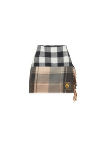 - Invisible zip closure on side - Tartan scarf fringes on side - Upcycled tartan scarves patchwork construction - Signature Moon jacquard lining - MS Regenerated label woven on front left side Materials Tartan Scarves Scottish heritage collides with a punk attitude in this hybrid range crafted from upcycled tartan scarves in various wool-blend compositions. Sourced in various different colour palettes and motifs, the checkered scarves’ fringed ends are optimized at the garments’ hem for a gracious finish. 100% Wool
