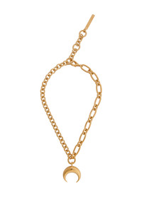 Chain necklace with signature Moon charm Product Detail - Galvanization Gold 10µ - Moon pendant - MARINE SERRE small plate on back end Composition and Traceability Product details page relating to environmental qualities or characteristics UJW011A RMET0003 MT51 SHINY GOLD Composition: Base Material: 100% Tin - Plating: 100% Gold - Trims: 100% Brass Avoid contact with water, cosmetics, perfumes, or any other toxic product. Traceability: Manufacturing: France