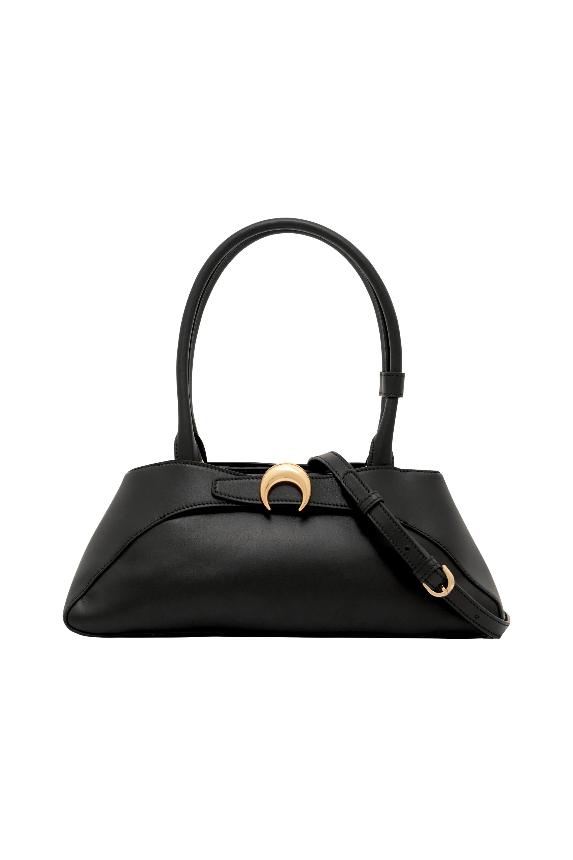 - Magnetic snap closure - Signature moon jacquard lining - Marine Serre leather patch Materials Black Smooth Leather Crafted in smooth nappa leather, made in italy for a premium and durable finish. Features a white elevated crocodile-effect embossed leather with a subtle shiny finish. Structured silhouette with a subtle trapeze shape for a strong identity. Wide, accentuated handle designed for comfortable and confident shoulder carry. 100% COS - Lining: 100% PL