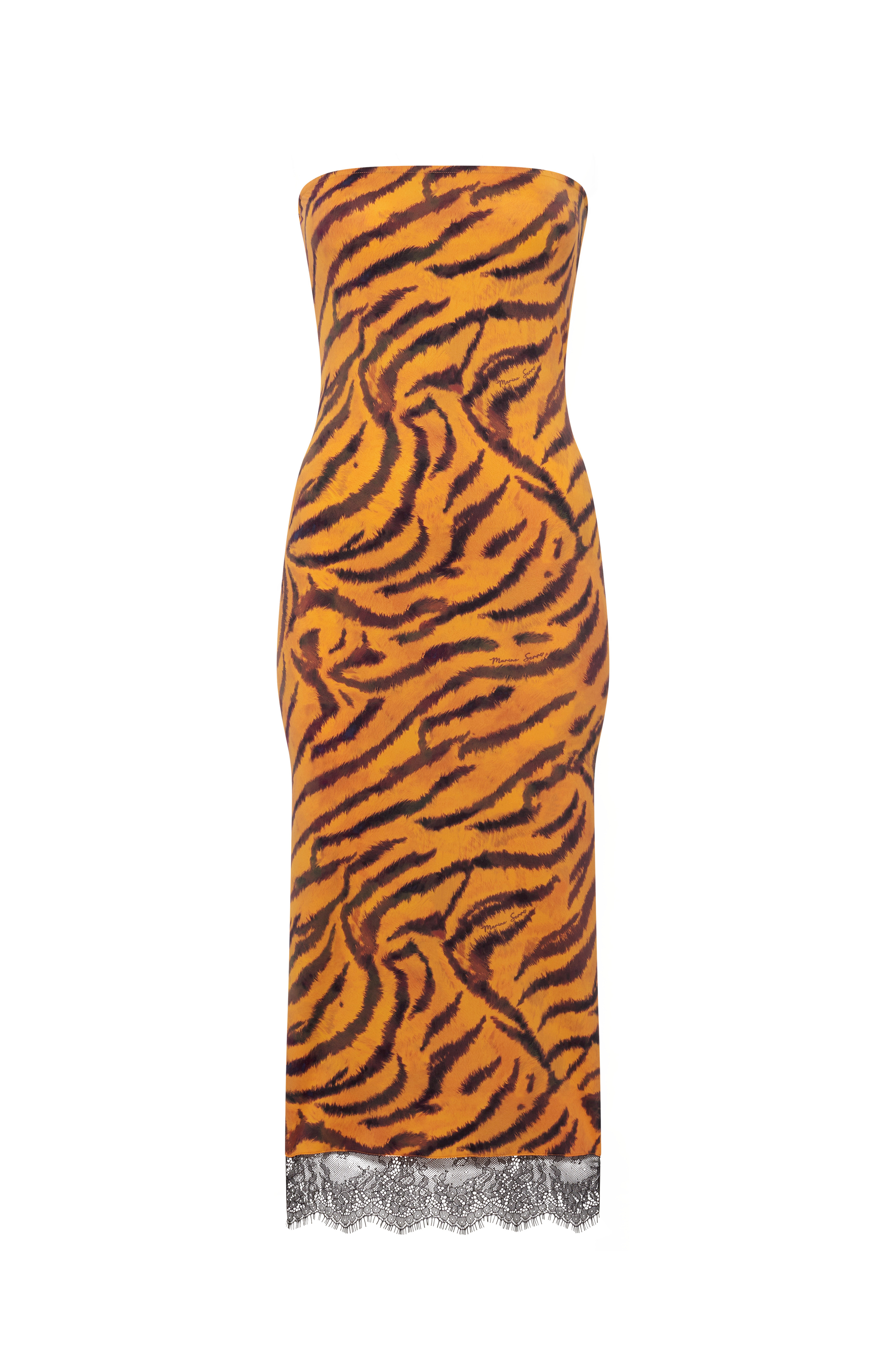 Tiger Printed Jersey SleeveleSS Tube Midi DreSS