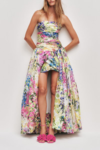 Dahlia Strapless Pintucked Printed Lyocell-blend Gown
