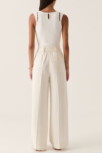 DETAILS AND INSIGHT Aje harlem pant in ivory. 47% polyester,53% RECYCLED POLYESTER Dry clean Made in China Style 24SU3144-IVRY
