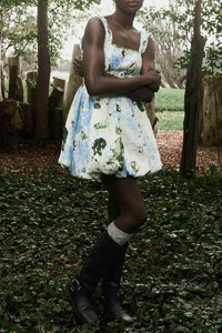 DETAILS AND INSIGHT Aje suzette mini dress in blue hydrangea. 100% Cotton Dry Clean Only Made In China Style 22SS5449-BLU HYD