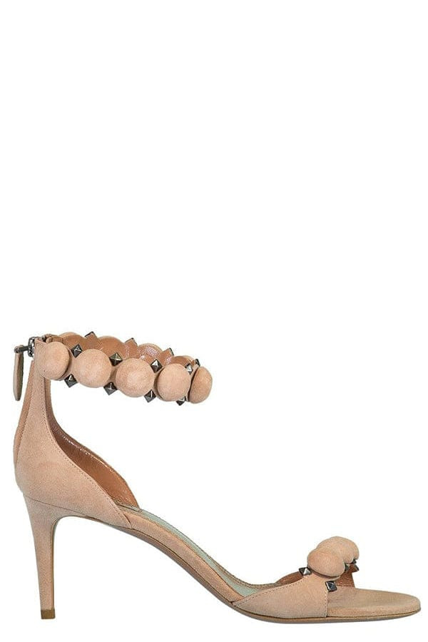 DETAILS AND INSIGHT Alaïa ankle bracelet sandal in chair. 90mm 100% Leather Upper, 100% Leather Sole Made in Italy Style AA3S770C0C16-117-CHAIR