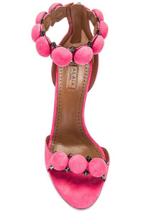 DETAILS AND INSIGHT Alaïa la bombe 90 in rose petal. Suede goatskin upper with leather sole and ruthenium-tone hardware; Leather Lining & Footbed Heel Height: 90mm Made in Italy Style AA3S770C0C16-439