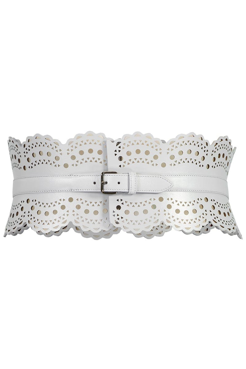 DETAILS AND INSIGHT Alaïa mini vienne belt in nuage. This Belt Is A Feminine Interpretation Of The Iconic Corset Belt. Its Scalloped Edges Accentuate Its Femininity. Its Striking Design Emphasizes Any Silhouette. With Its Thin Buckle, It Adjusts Perfectly To The Waist. Dimensions (Cm): H 12 100% Leather Made in Italy Style AA1C082GC0A29-803