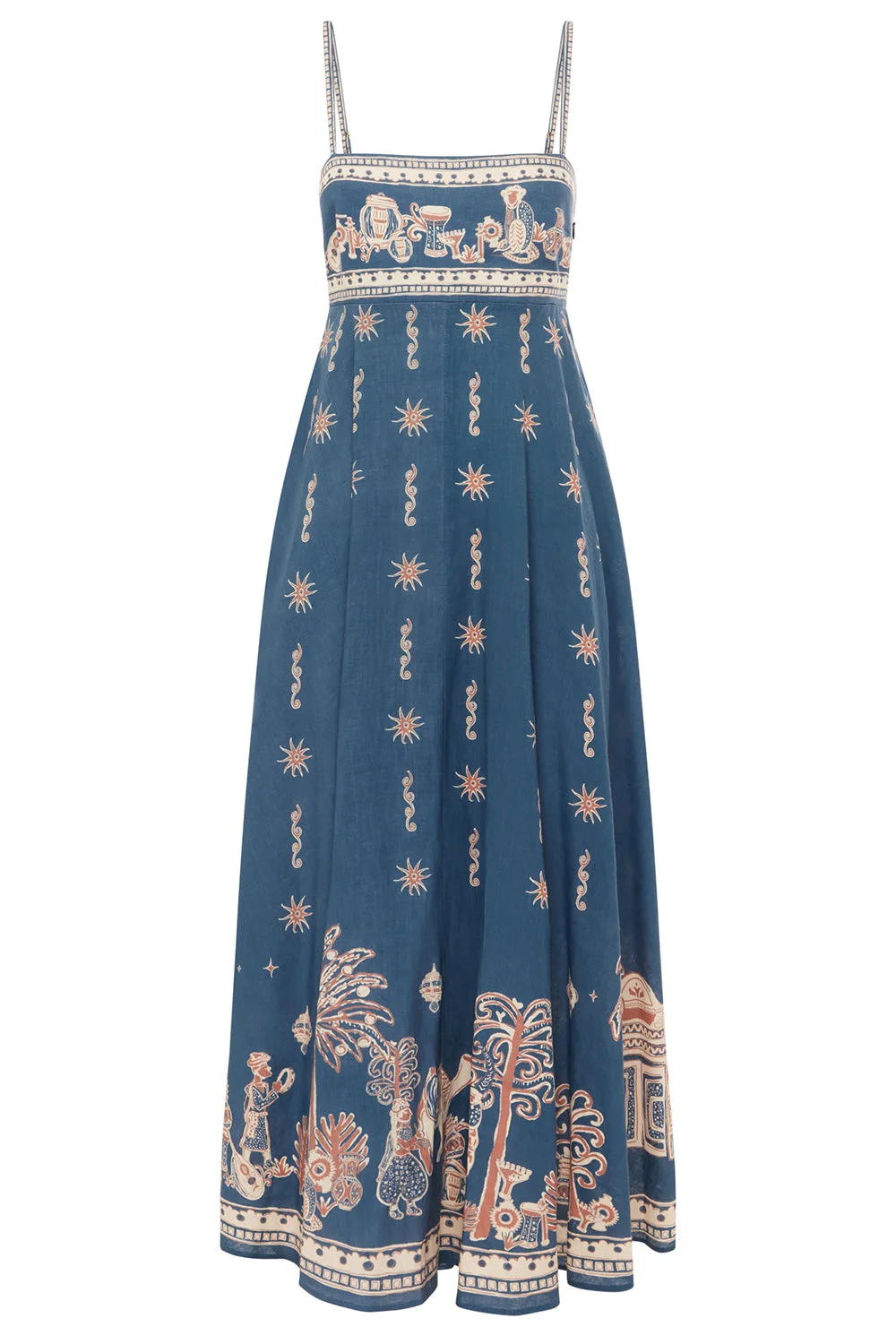 DETAILS AND INSIGHT Alemais acacia sundress in blue. 100% European Linen Hand Wash Made In China Style 6206D-BLUE