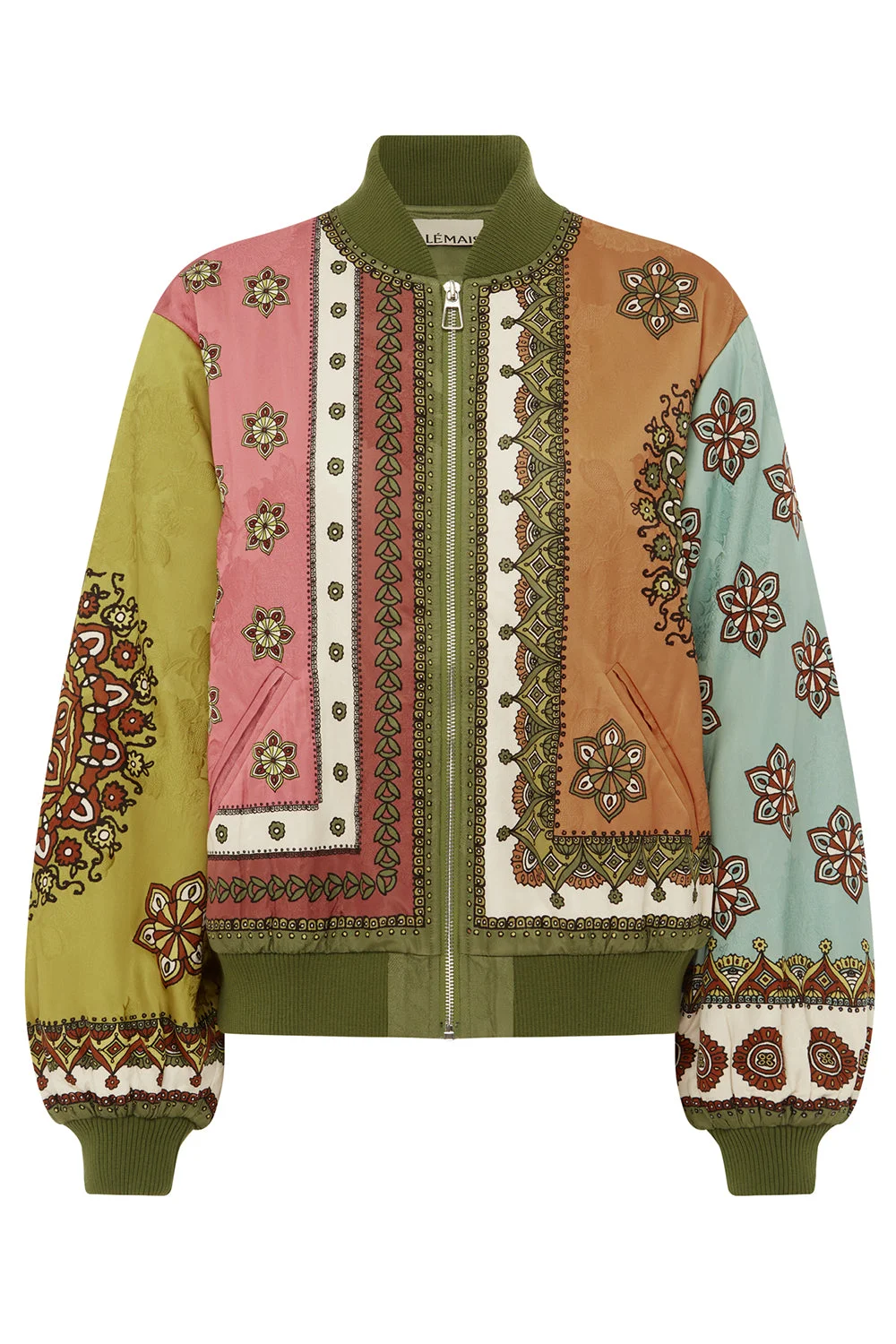 DETAILS AND INSIGHT Alemais contina bomber jacket in multi. 100% Viscose Jacquard Hand Wash Made In China Style 6422J-MULTI