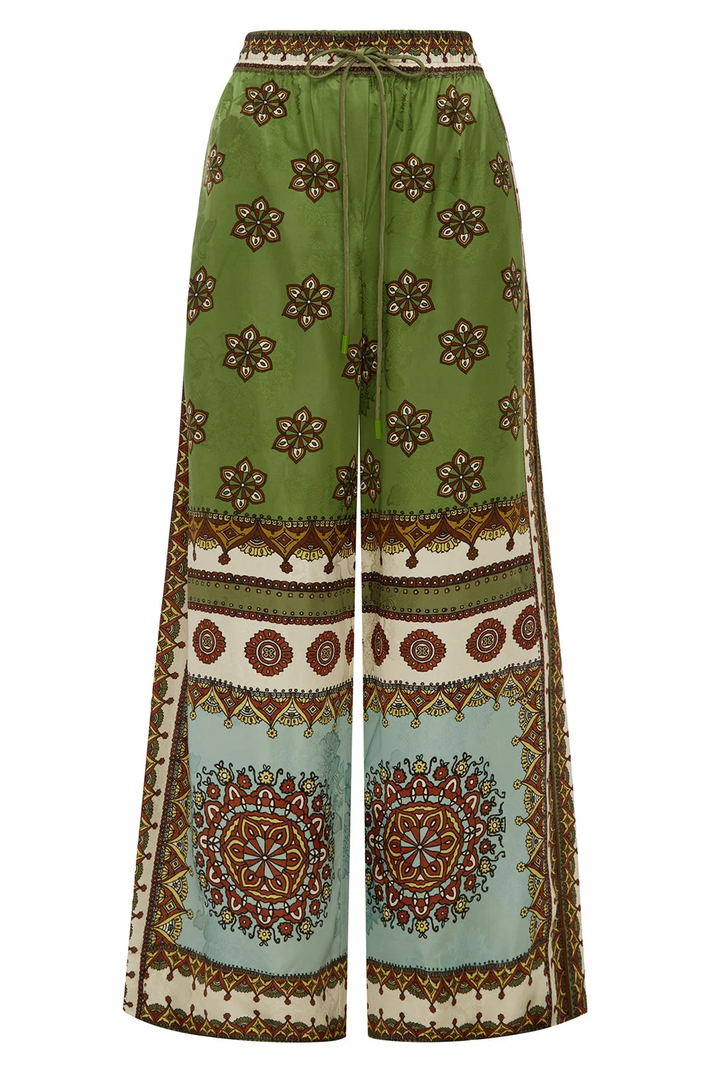 DETAILS AND INSIGHT Alemais contina pant in multi. 100% Viscose Jacquard Hand Wash / Dry Clean Only Made In China Style 6419P-MULTI