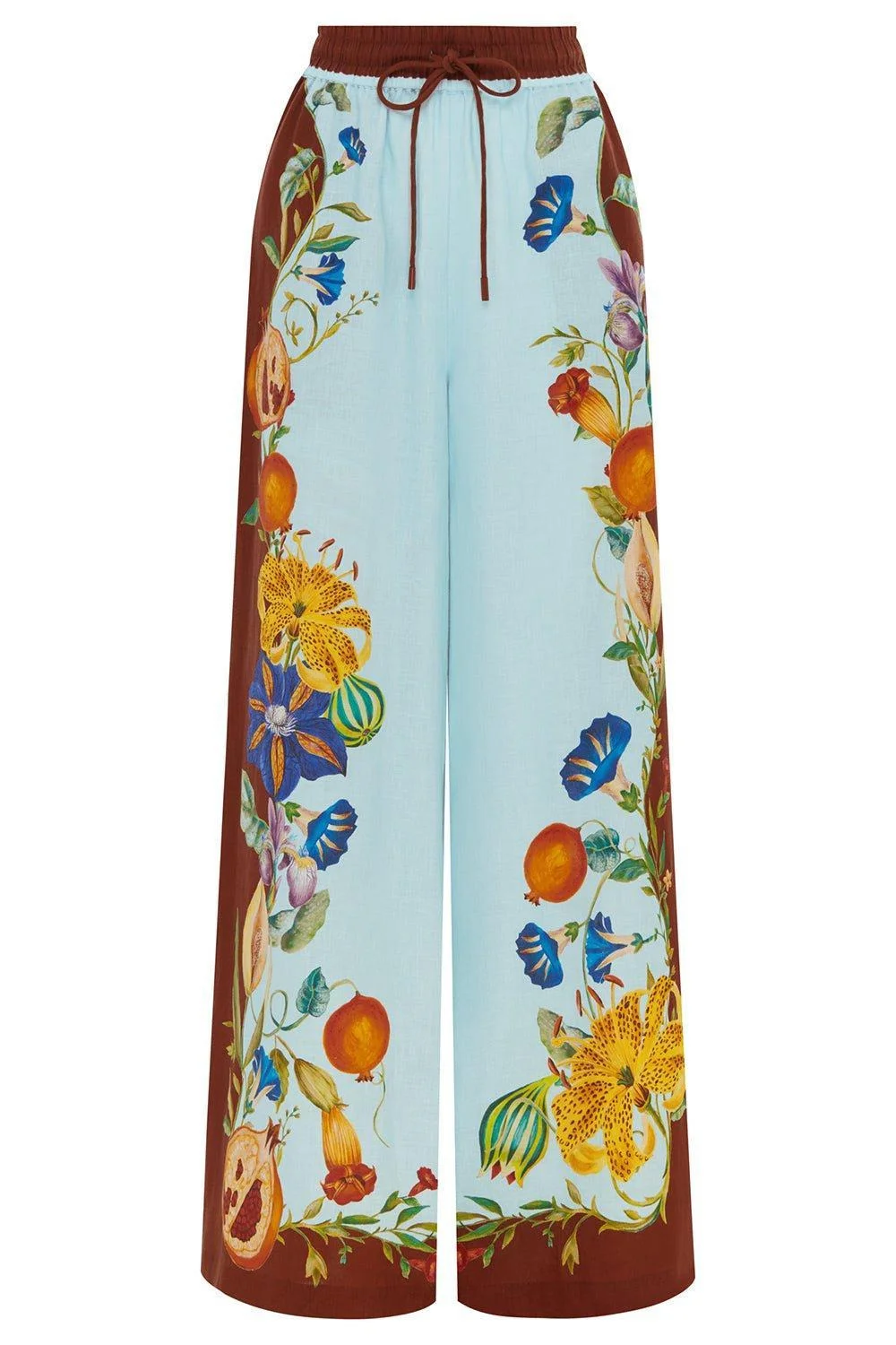 DETAILS AND INSIGHT Alemais dahlia pant in multi. 100% EUROPEAN FLAX LINEN Dry clean Made in China Ships by Jan. 14 Style 4360P-MULTI