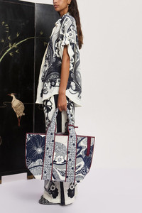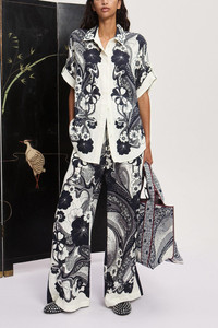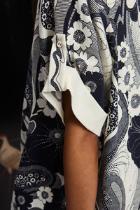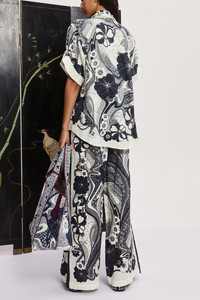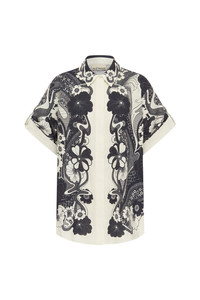 DETAILS AND INSIGHT Alemais mickey shirt in navy. Pointed Collar And Stand Rolled Sleeve Hem With Tabs Concealed Placket With Self-Covered Buttons, Inseam Pockets 100% European Linen Dry Clean Made In China Ships by July 7 Style 5133T-NAVY